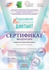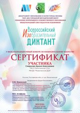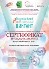 Обучающиеся нашей школы были награждены сертификатами участников конкурса. Преподаватель Безденежная Д.В. награждена сертификатом модератора конкурса, а наша Милютинская детская школа искусств является площадкой Всероссийского изобразительного диктанта.