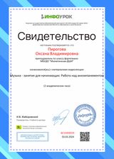 Преподаватели фортепианного отделения "Милютинской ДШИ" Золотовская С. Н. и Пирогова О. В., приняли участие в мастер-классе "Музыка-занятия для начинающих: Работа над аккомпанементом", который проходил 3 марта 2024г на онлайн-платформе "Инфоурок". Работа над аккомпанементом на фортепиано представляет собой процесс изучения и практики создания музыкального сопровождения лидера произведения-мелодии. Поэтому стоит подавать столь важную информацию для детей, как увлекательный и познавательный процесс.