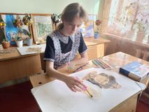 Сейчас Вика учится на художественном отделении, класс преподавателя Ковалёвой О.К. Здесь она проявила себя как трудолюбивая, целеустремленная, творческая личность. Рисунки к праздникам, натюрморты, пейзажи-все это присутствует в её творчестве. Ни один конкурс не обходится без яркого, интересного рисунка Вики. В этом учебном году Виктория - выпускница художественного отделения. Сейчас она работает над триптихом на историческую тему. Эти три работы обещают быть очень интересными. Умница Вика, так держать!