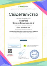 На платформе Инфоурок прошла конференция для преподавателей ДШИ по классу фортепиано: «Индивидуальное обучение игре на фортепиано как фактор всестороннего развития личности». Преподаватели фортепианного отделения «Милютинская ДШИ» Пирогова О. В., Золотовская С. Н. приняли участие в мероприятии. Конференцию провел магистр Анасенко Александр Вячеславович, концертный исполнитель, артист камерного ансамбля, преподаватель по специальности инструментальное исполнительство (фортепиано, орган), артист - концертмейстер Государственного Большого Театра России. Затрагивались такие актуальные темы по работе с обучающими ДШИ: развивающее обучение как процесс интеллектуального развития ученика, методы практического освоения музыкальной информации, методы развития творческих способностей и т. д. В завершении конференции преподаватели прошли тестирование. По окончанию конференции преподаватели получили свидетельства об участии.