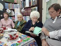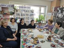 Гостеприимные хозяева районной библиотеки угостили всех чаем. В конце встречи преподаватели Кнышова Т.В., Высоцкая Н.М. исполнили дуэтом произведение Александра Бурмистрова «На отдыхе».