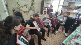 Высоцкая Наталья Михайловна пришла на встречу со своими внуками Высоцкими Евгенией, Софьей и Захаром. Семейный квартет аккордеонистов исполнил «Хоровод» композитора Юрия Зубатова.