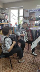 Кнышова Татьяна Васильевна поделилась с присутствующими семейной историей о том, как исполнила мечту своего отца, который сам мечтал играть на баяне. Она исполнили на баяне замечательное произведение Вячеслава Баканова «Французская открытка»