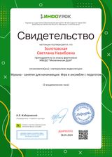 В мае 2024 г. преподаватели фортепианного отделения Золотовская С.Н., Пирогова О.В. Милютинской детской школы искусств посетили Мастер-класс «Музыка - занятия для начинающих: «Игра в ансамбле с педагогом». Провела мастер-класс Костикова Е.Д. - педагог, выпускница МГУ имени П.И. Чайковского, концертмейстер в ИТИ имени Кобзона. Ансамбль с педагогом представляет собой увлекательное погружение в мир коллективного музицирования. Обучающиеся получают возможность познакомиться с основами игры в ансамбле. Умение играть в ансамбле воспитывает у обучающихся навык аккомпанировать другим инструментам. По окончании мастер - класса преподаватели Золотовская С. Н., Пирогова О. В. прошли тесты и получили свидетельства.