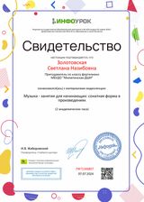 Преподаватель Милютинской детской школы искусств по классу фортепиано Золотовская С.Н. посетила видео-лекцию на платформе Инфоурок по теме: «Музыка-занятия для начинающих: сонатная форма в произведениях».
