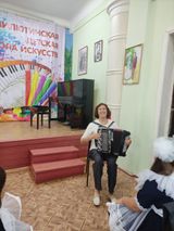 Кнышова Татьяна Васильевна, преподаватель по классу баяна, спела со всеми детьми песню «Пусть бегут неуклюже».