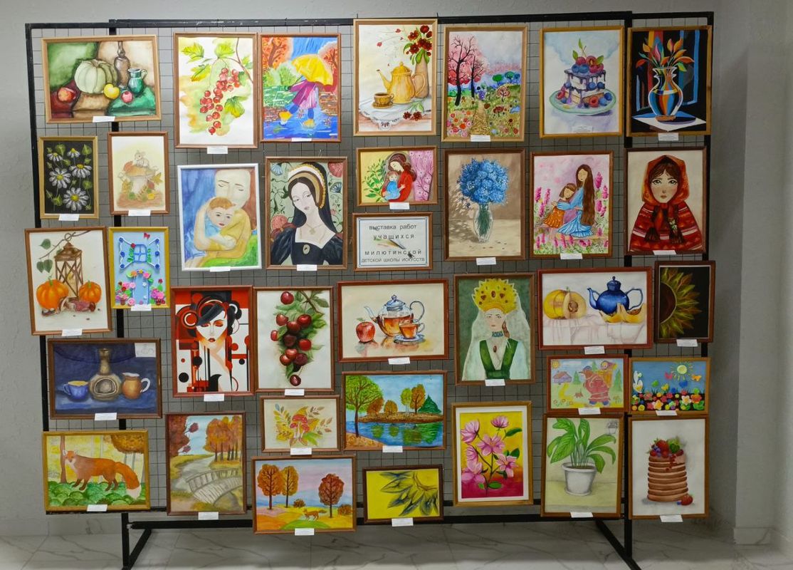 28 ноября на фестивале детского творчества "Радуга талантов" в фойе Милютинского районного Дома культуры была представлена выставка обучающихся художественного отделения Милютинской детской школы искусств, посвящённая Дню Матери. Работы выполнили: