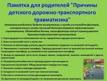 Памятка по предотвращению детского дорожно-транспортного травматизма