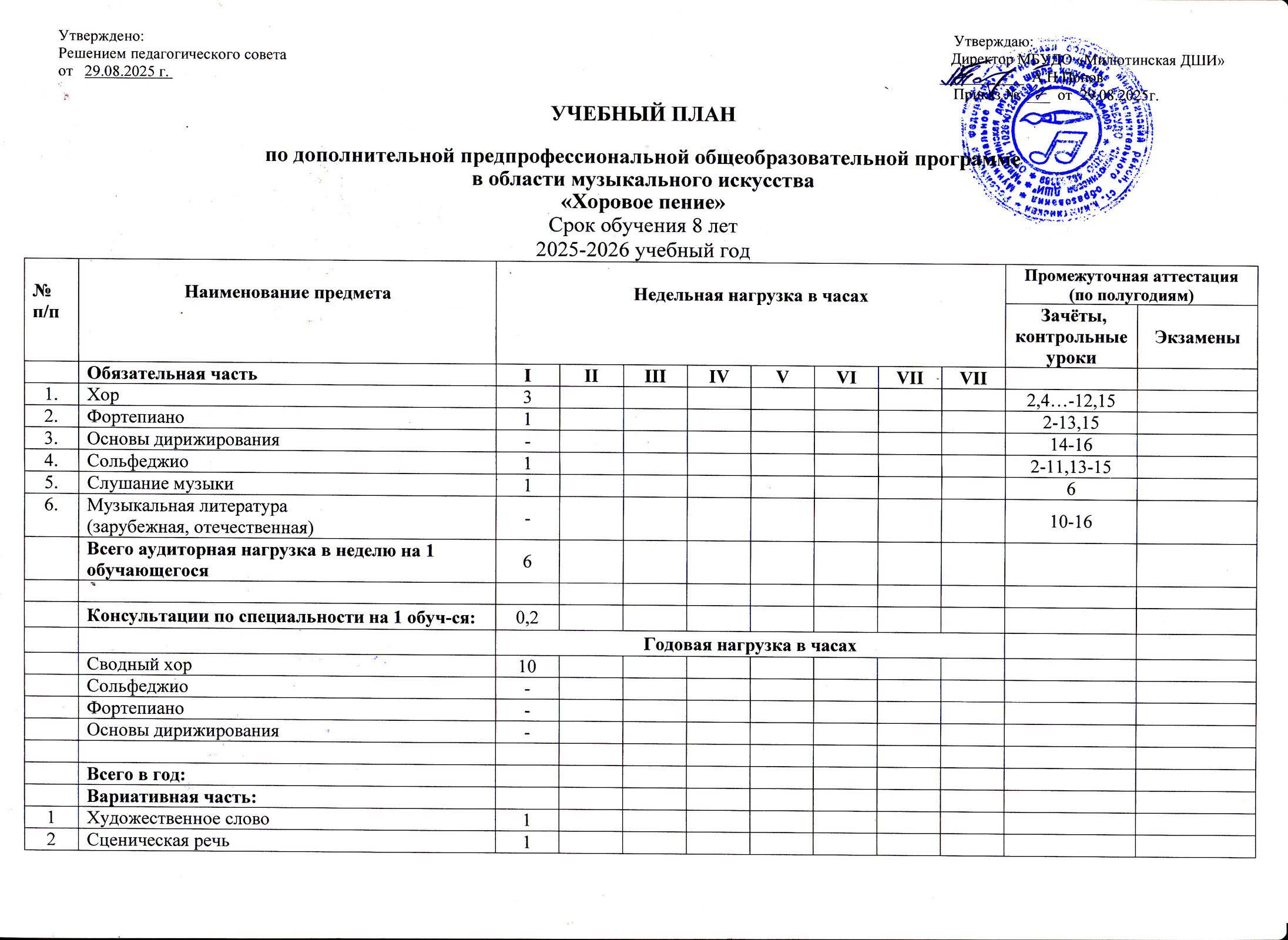 | Образовательная программа, направленность, профиль, шифр и наименование научной специальности | Дополнительная предпрофессиональная общеобразовательная программа в области музыкального искусства "Хоровое пение" 8(9) лет обучения |
