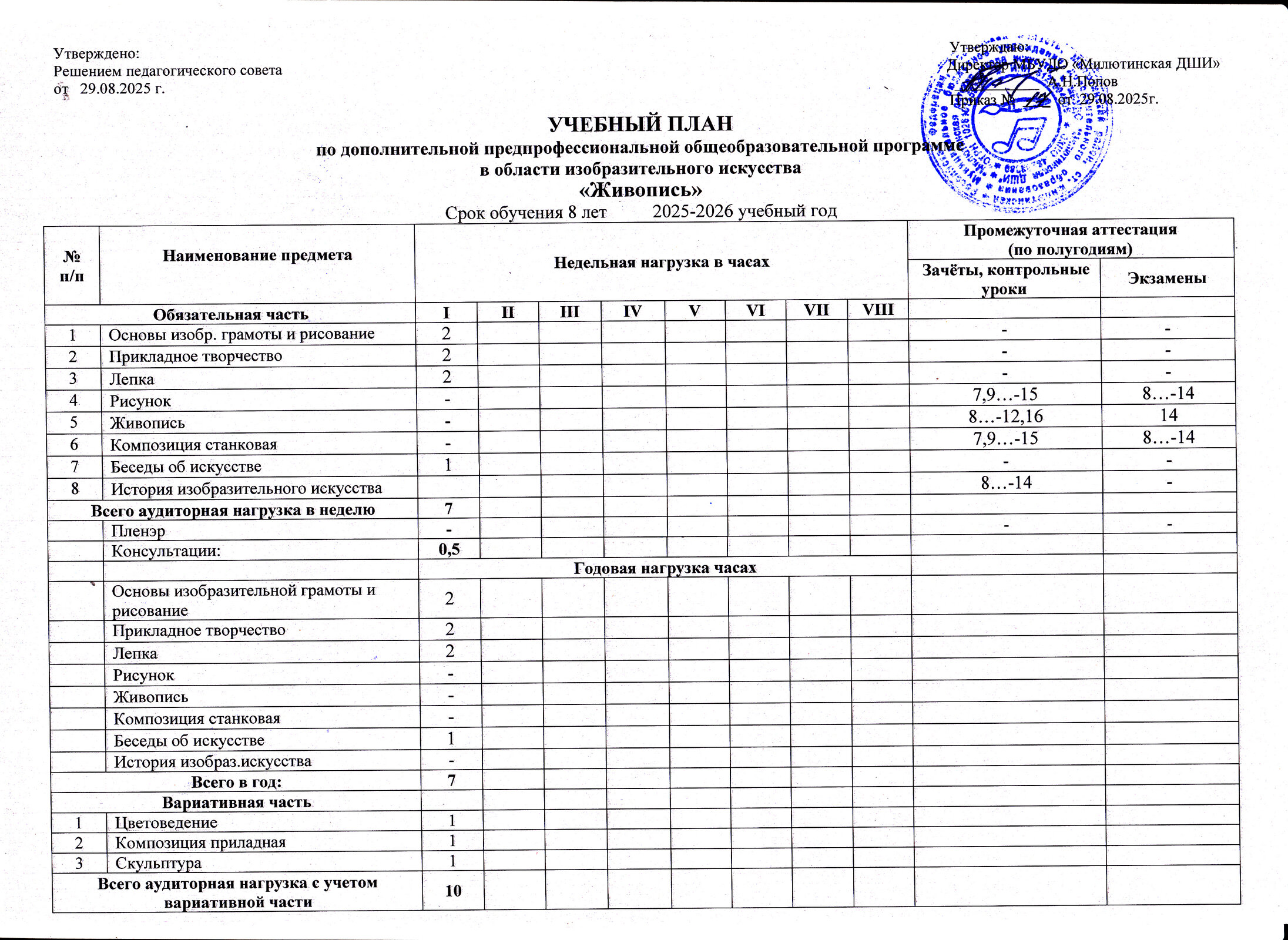 | Образовательная программа, направленность, профиль, шифр и наименование научной специальности | Дополнительная предпрофессиональная общеобразовательная программа в области изобразительного искусства "Живопись" 8(9) лет обучения |