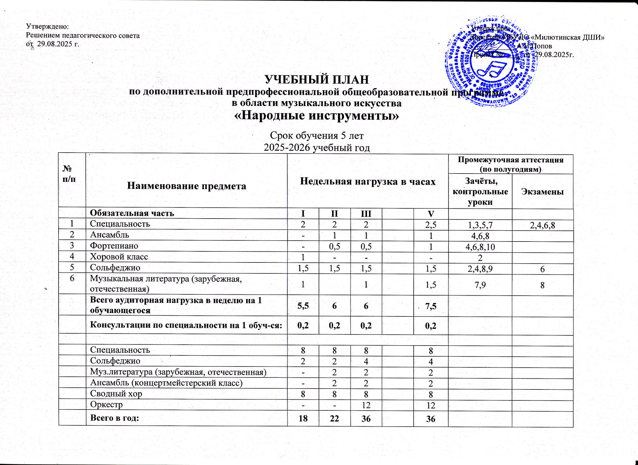 | Наименование профессии, специальности, направления подготовки, научной специальности | Дополнительная предпрофессиональная общеобразовательная программа в области музыкального искусства «Народные инструменты» 5(6) лет обучения |